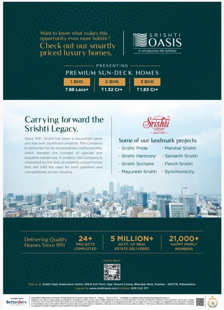 Srishti Group was established in 1991 with an idea of providing quality and luxurious homes personalized to the highest standards.
